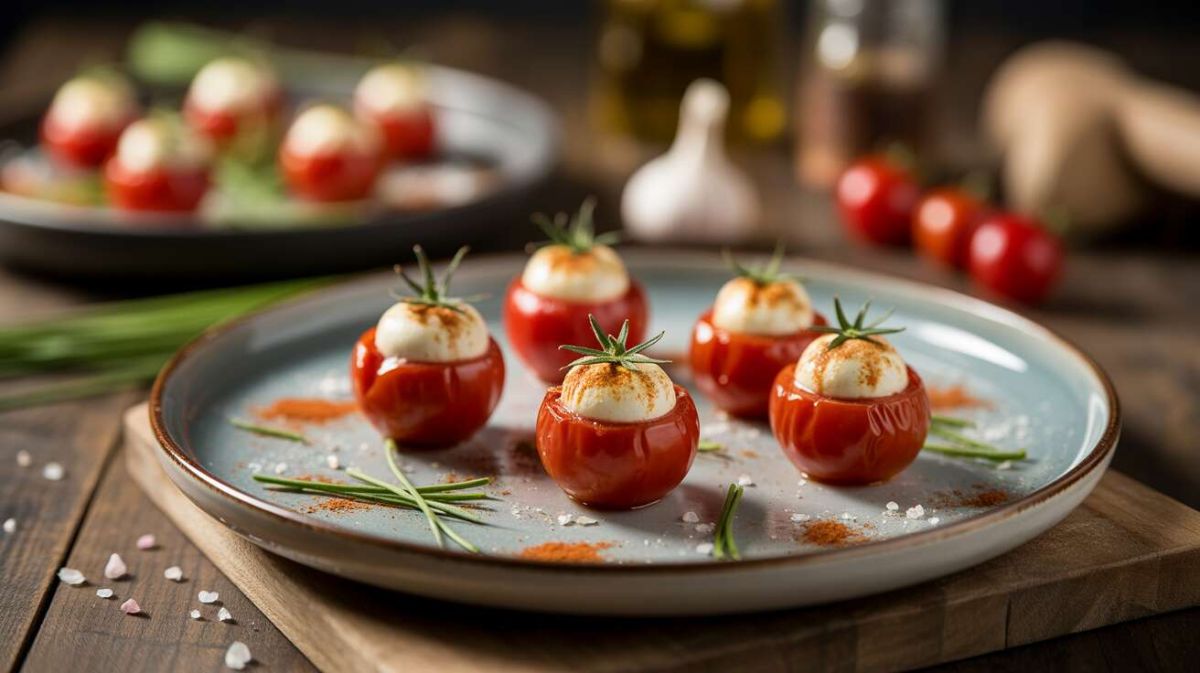 Pour enrichir encore plus vos tomates cerises, n'hésitez pas à ajouter une pincée de noix concassées à votre mélange de fromage frais, apportant ainsi une délicieuse texture croquante.