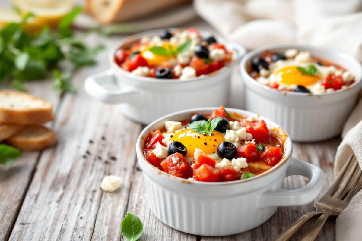 Pour concocter des œufs cocotte à la tomate, olives noires et feta, quelques éléments essentiels de la cuisine méditerranéenne suffisent. Chaque bouchée vous transportera, mariant le fondant de l'œuf à la vivacité des légumes.
