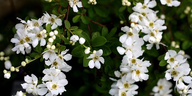 - Exochorda x macrantha ‘The Bride’ - un hybride compact, reconnu pour sa floraison abondante.