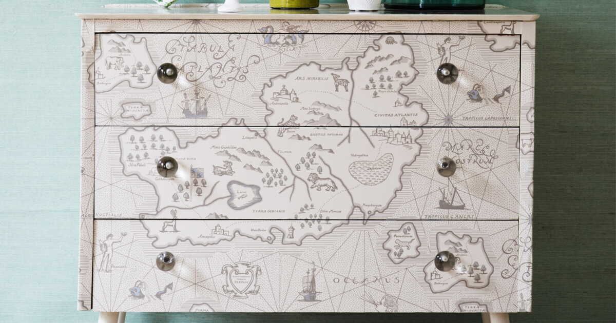 - Décalcomanies : Utilisez des cartes, des images et des motifs provenant de différentes cultures pour personnaliser les surfaces de votre commode.