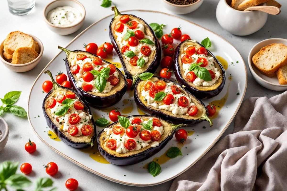 Servez ces délicieuses aubergines farcies avec une salade fraîche pour un repas d'été savoureux et léger, parfait pour partager des moments joyeux autour de la table.