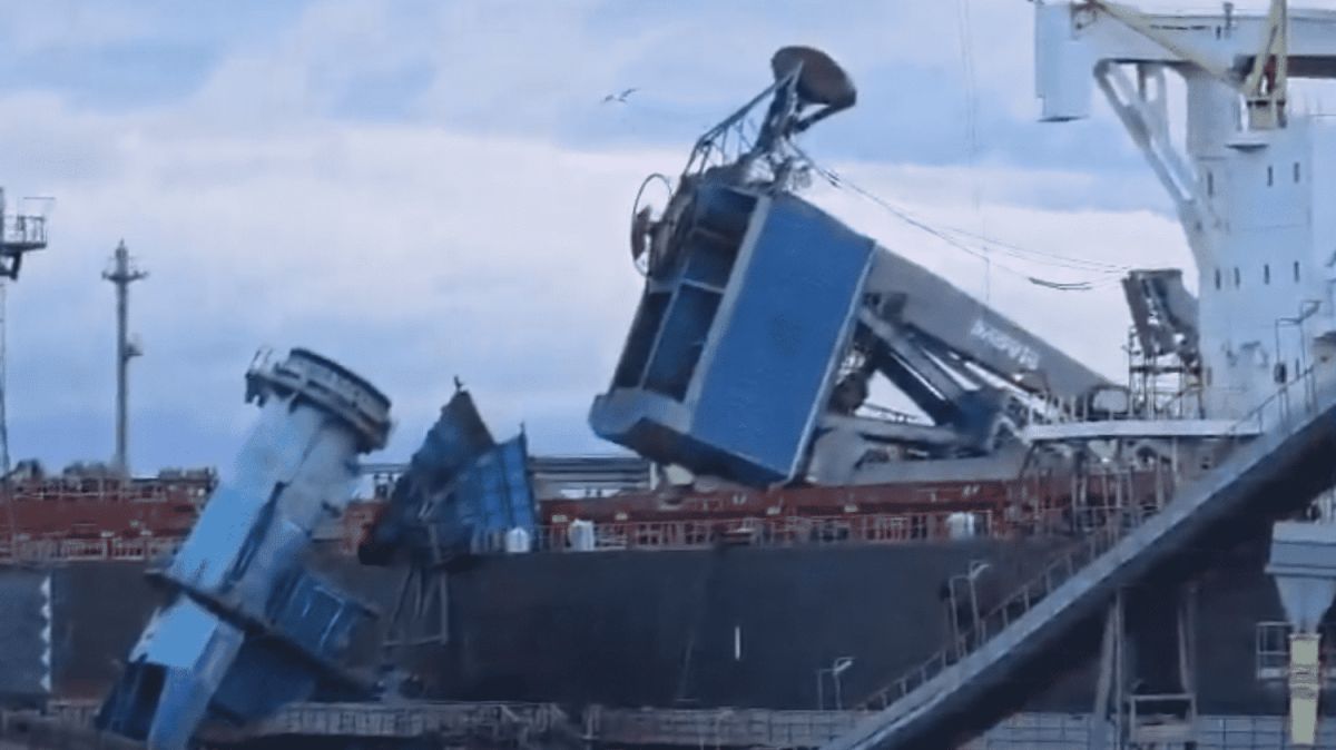 🌬️ Suite aux fortes rafales de la nuit à Sète, une grue est tombée sur un bateau dans le port de commerce.